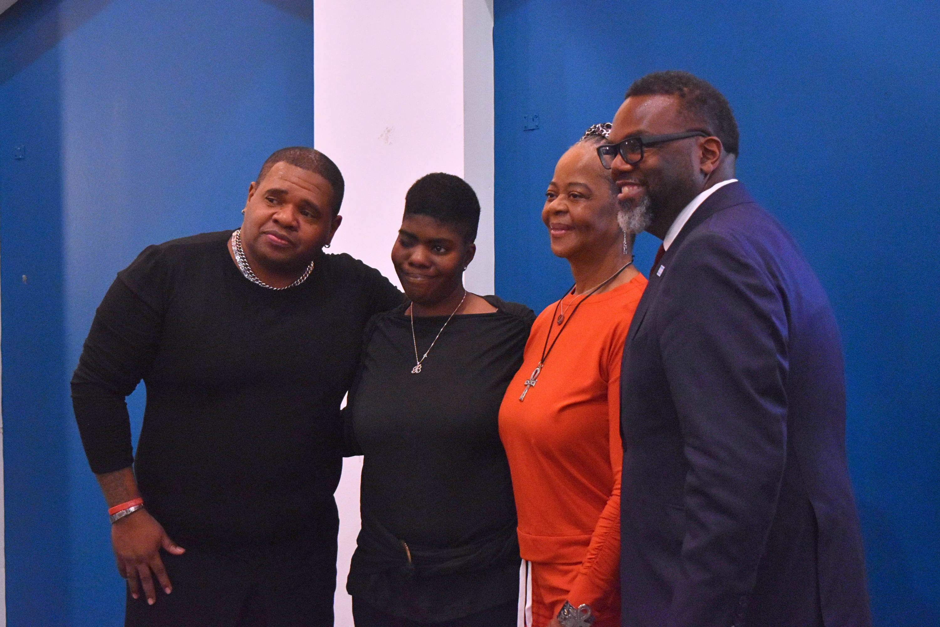 - Los líderes de base del CCH y sus familias posan con el alcalde Brandon Johnson.